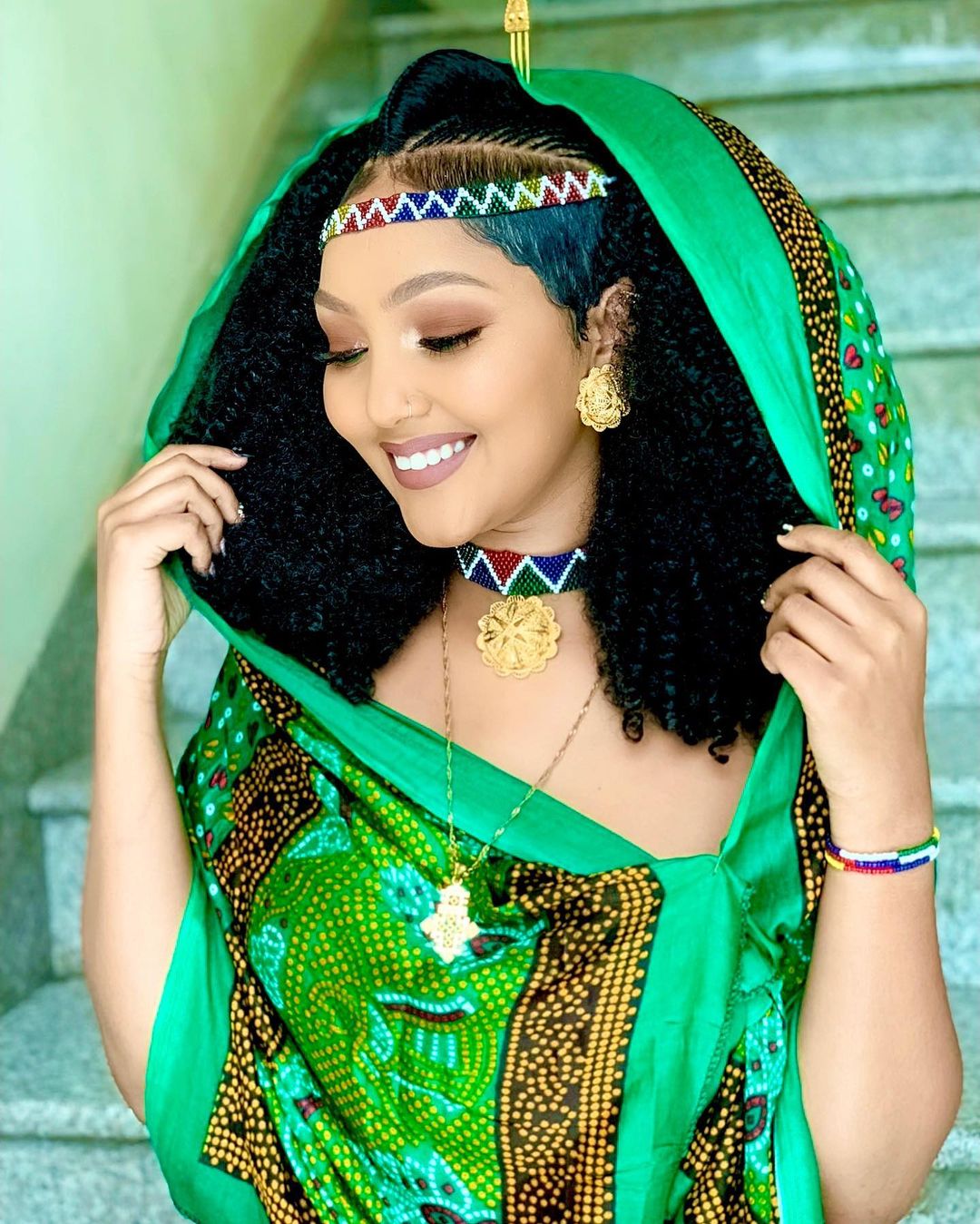Tigraian women wear a necklace called Gubagub (ጎባጉብ), a chain of about five bright pieces of roughly round jewellery around their neck.